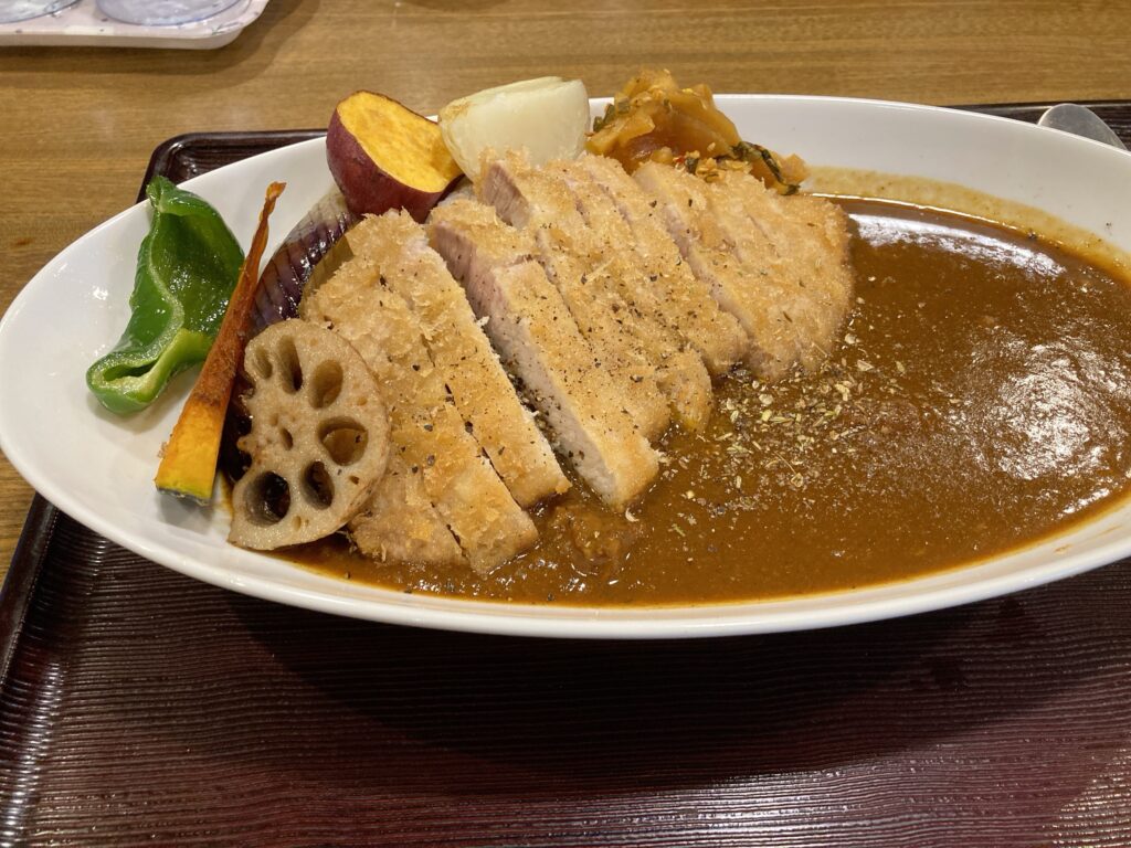カレーもカツも温野菜も自分好み。ほめないことがおかしいと思います。特になすとカツが最高です。