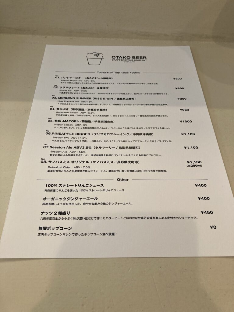 いただいたのは、こちら1番のジンジャービターです。おたこ醸造所謹製です。