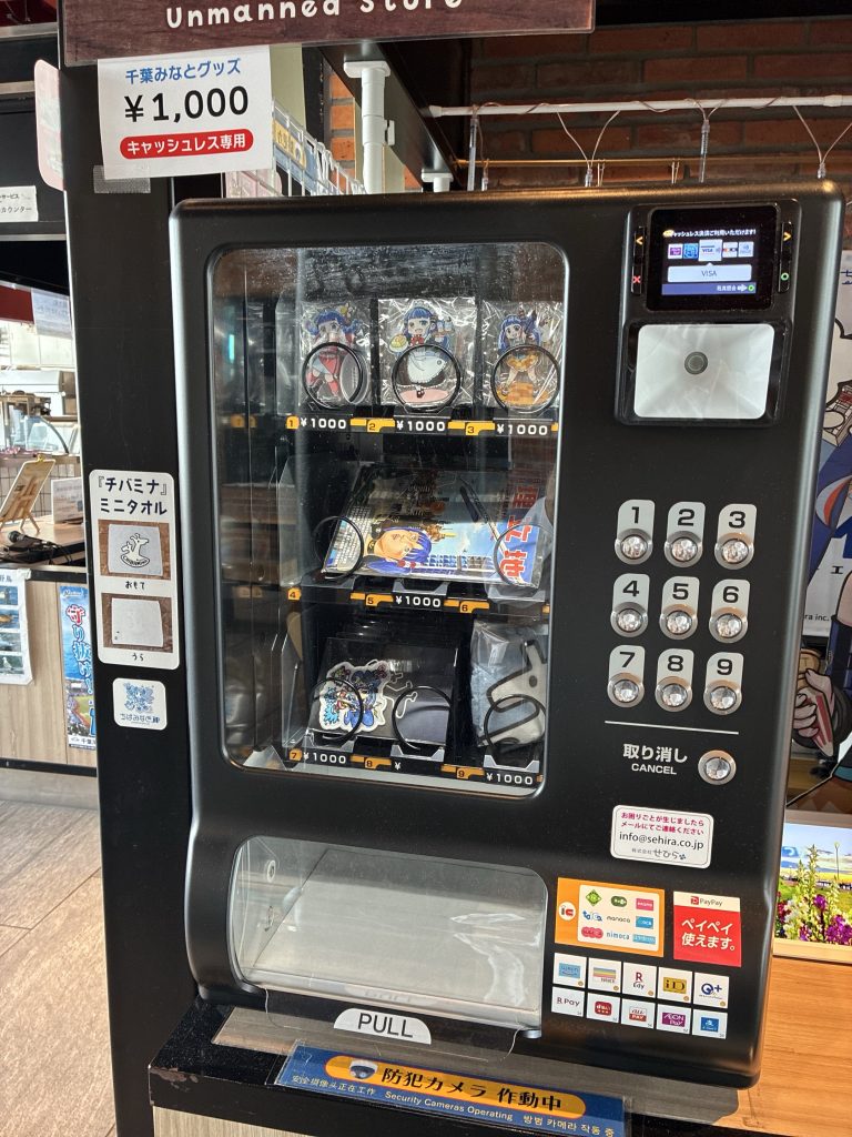 そうです。自販機が置いてあって、グッズと埋立地が売られています。