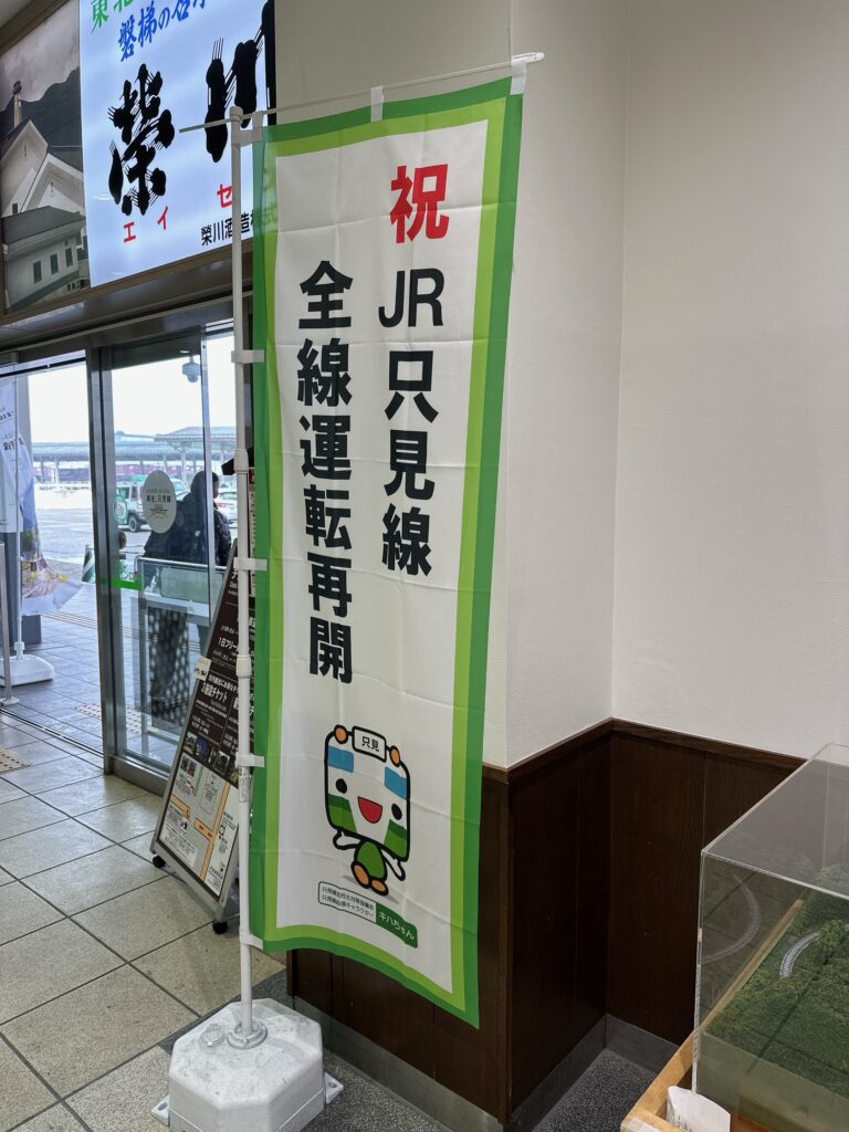めお旅2023.10.18鉄道会社が提案するプランで千葉から日帰り只見線完乗してみた ポスト シェア はてブ 送る Pocket11:57 会津若松着さや松モデルコースだと西若松で降りるんだけど、只見線に始発駅から乗りたかったから会津若松まで乗り通したよ。さや松赤べこちゃんがいる!!さや松お昼ごはんは駅構内で会津ラーメンをいただきましたさや松あっさりした塩でおいしかったな。麺はちぢれ麺。さや松あと、ソースカツ丼も食べちゃった……でる太えっさや松美味しかったです。これで小出までの乗り通しも頑張れるでる太食べ物の写真が出てくるとグルメブログっぽいですね。さて、只見線は災害で長らく不通箇所がありましたさや松うん。だから全線運転再開を祝うのぼりが出てた。 123456≪ 前のページへ 次のページへ ≫スポンサードリンク