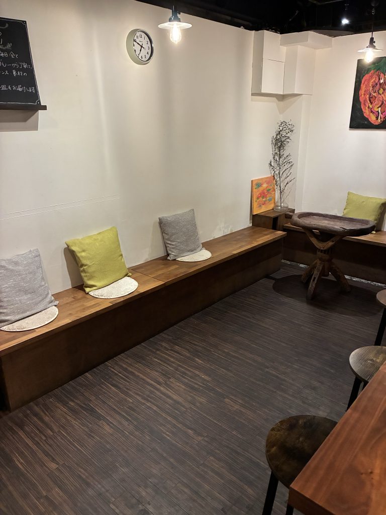 奥のベンチは日中サラダを待つ時に座るよ。ところで時計がバッチリ写り込んでいますが