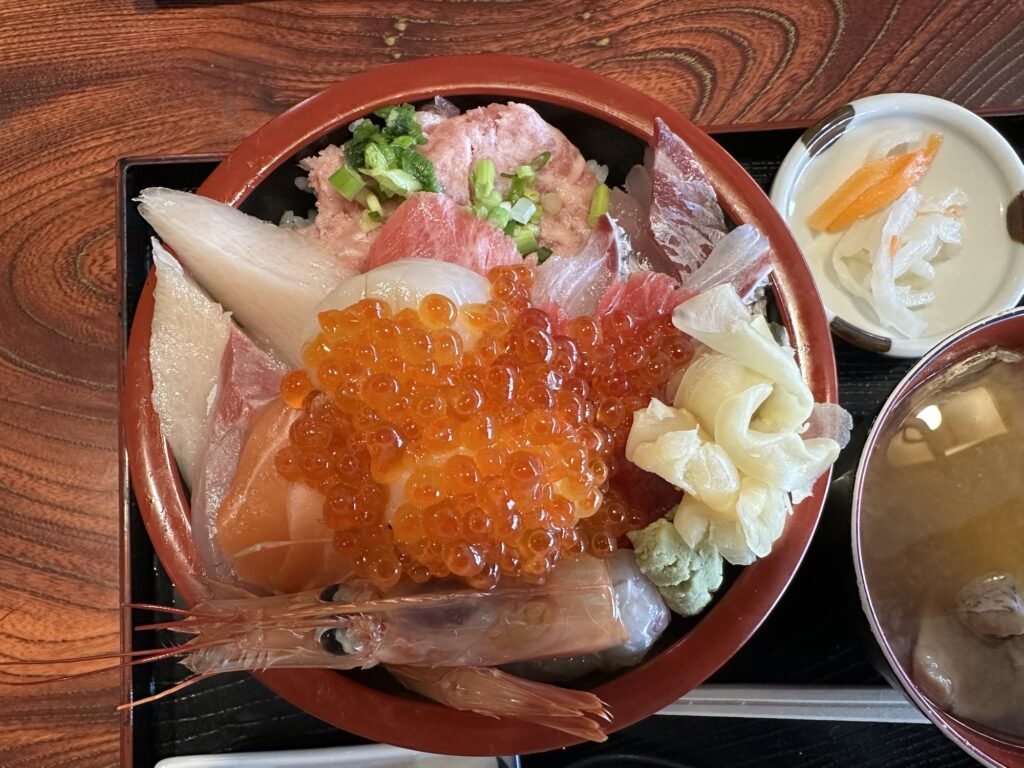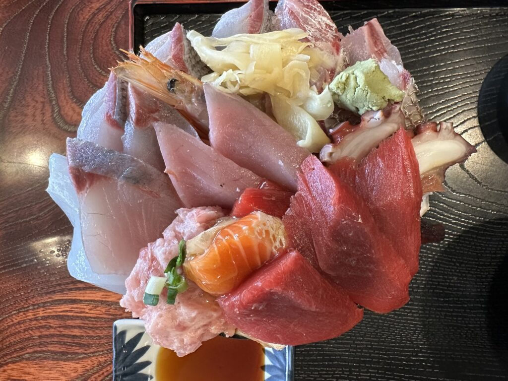 ネタ大盛海鮮丼は本当にネタが大盛でした。ネタは日替わりだそうですが、この日は10品くらい載ってました。
